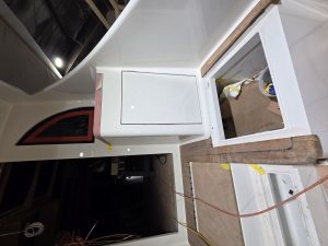 Additional bulkheads were installed this week, locking in room boundaries and increasing hull rigidity. These bulkheads are structural elements first and aesthetic components second—built to support cabinetry, appliances, and hardware while also dampening sound and vibration.